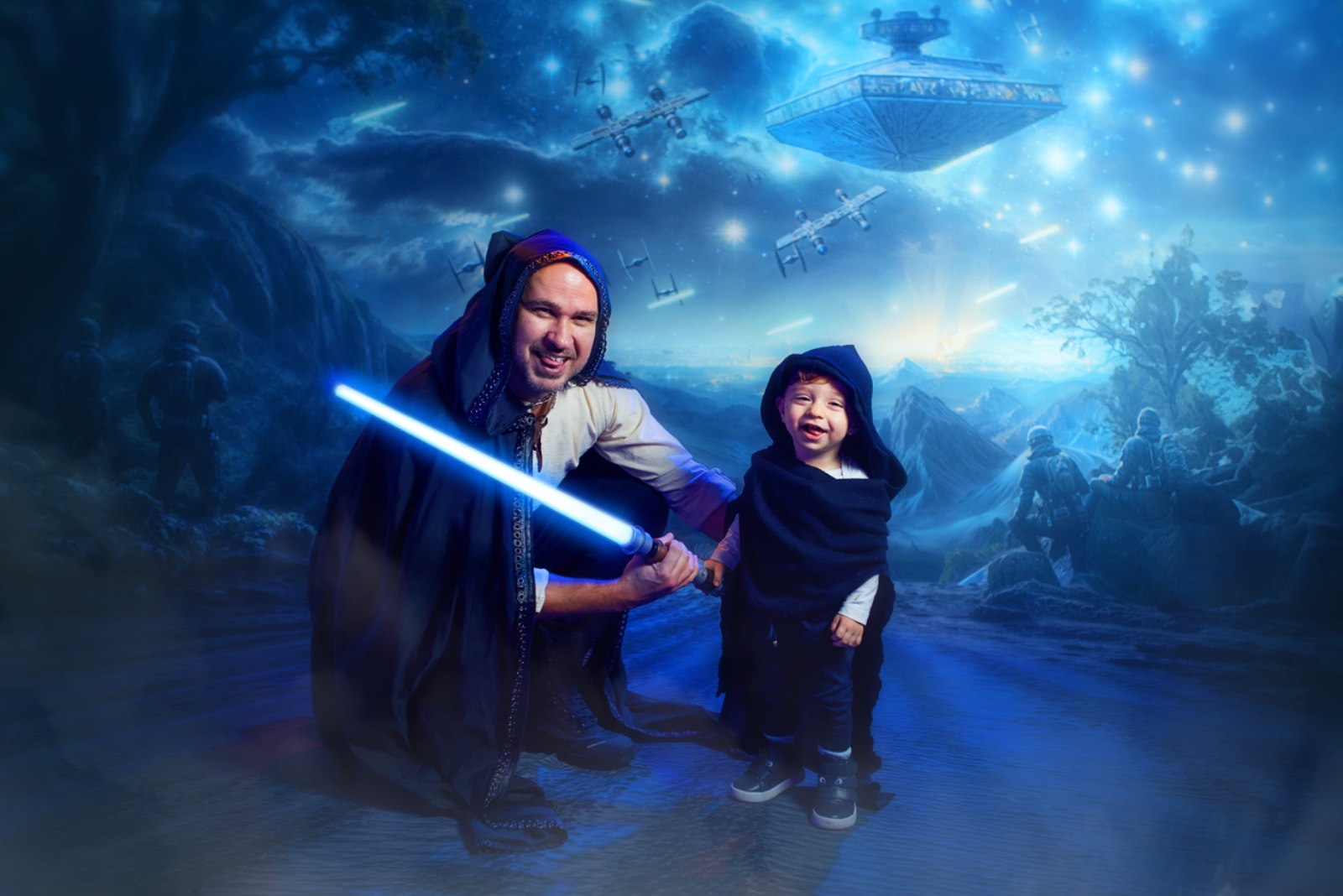 Nada melhor do que uma sessão de fotos divertida para celebrar o lado descontraído dos pais! Fundos temáticos e coloridos podem trazer à tona a alegria e a leveza desses momentos. Considere cenários que remetem a hobbies ou interesses pessoais, como esportes, música ou viagens. Use elementos lúdicos para criar uma atmosfera alegre e cheia de energia. Esses cenários oferecem a oportunidade de transportar seus clientes para lugares distantes e criar narrativas visuais que destacam a personalidade e interesses de cada pai.