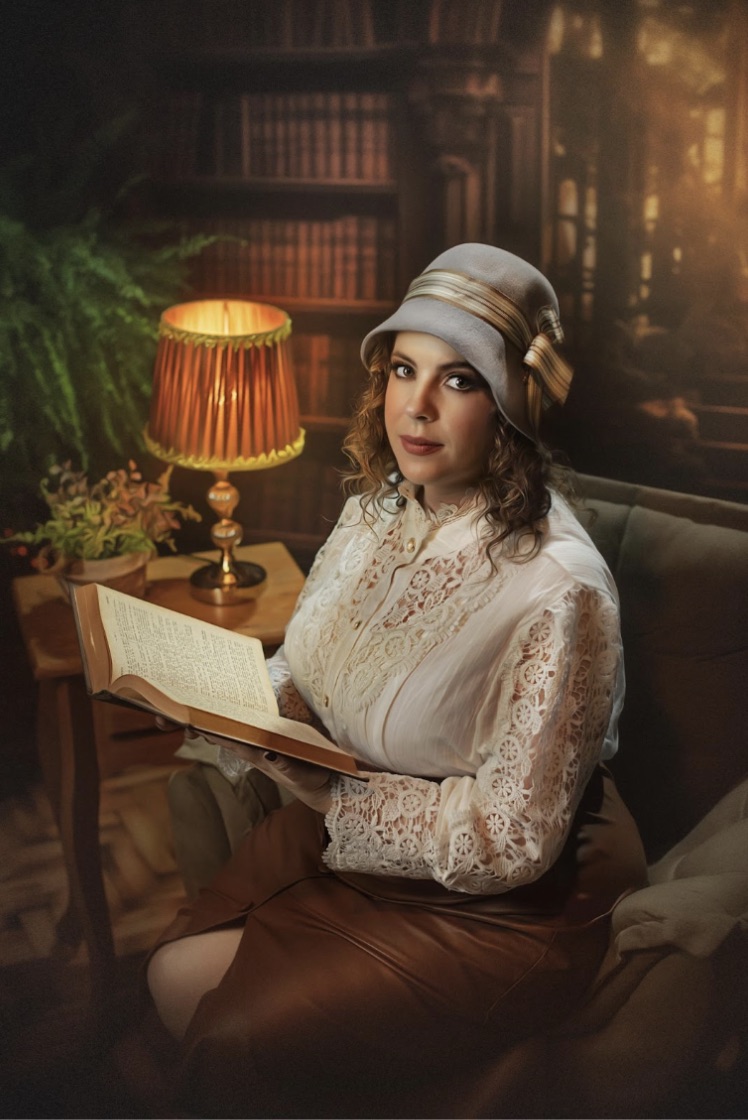 Este fundo foi feito pela @Fabrike.personalizados para o evento das fotógrafas da @creativeinspiration, onde temos uma fonte de luz amarela vindo da porta, que incide sobre os livros que estão à esquerda, e também temos uma fonte de luz que está incidindo do lado direito nas plantas e livros
