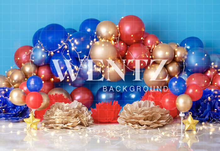 Fundo Fotográfico em Tecido Cenário Balão Azul e Vermelho / Backdrop 1853