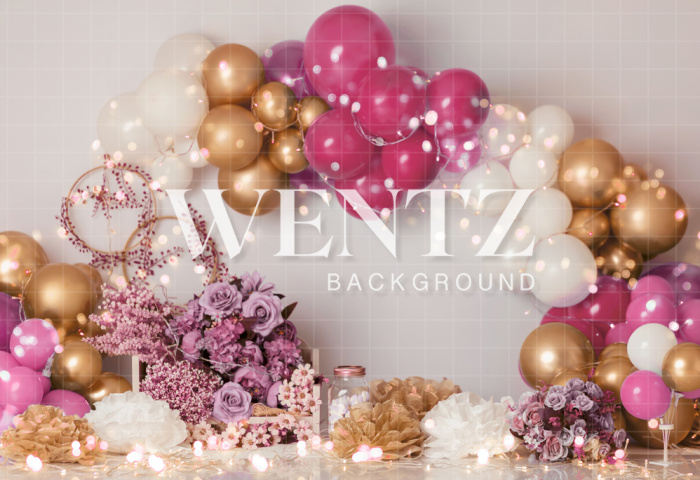 Fundo Fotográfico em Tecido Cenário Balão Fúcsia e Branco / Backdrop 1854