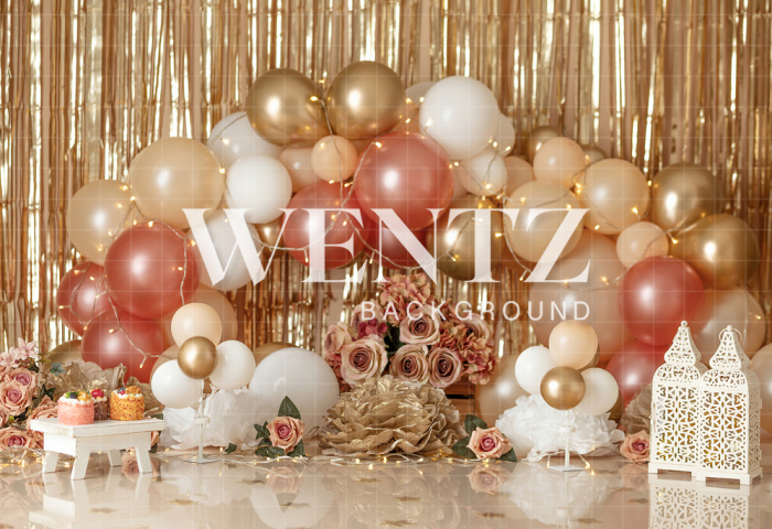 Fundo Fotográfico em Tecido Cenário Balão Rose Dourado / Backdrop 1932