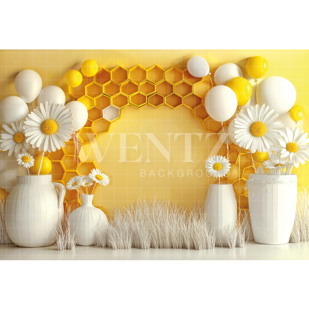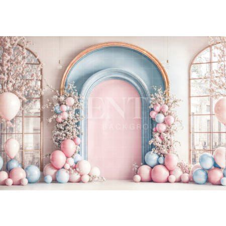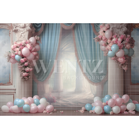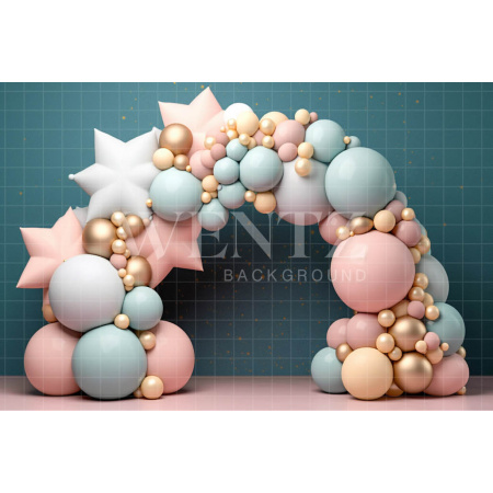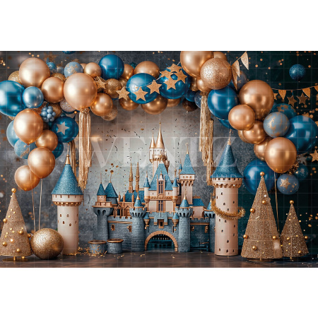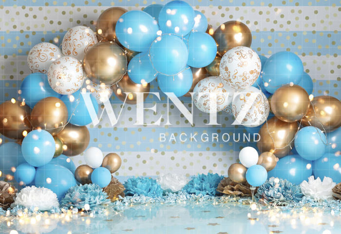 Fundo Fotográfico em Tecido Cenário Balão Azul e Dourado / Backdrop 2209