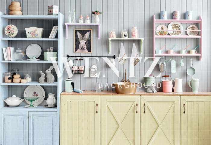 Fundo Fotográfico em Tecido Cozinha de Páscoa Colorida Newborn / Backdrop 2041