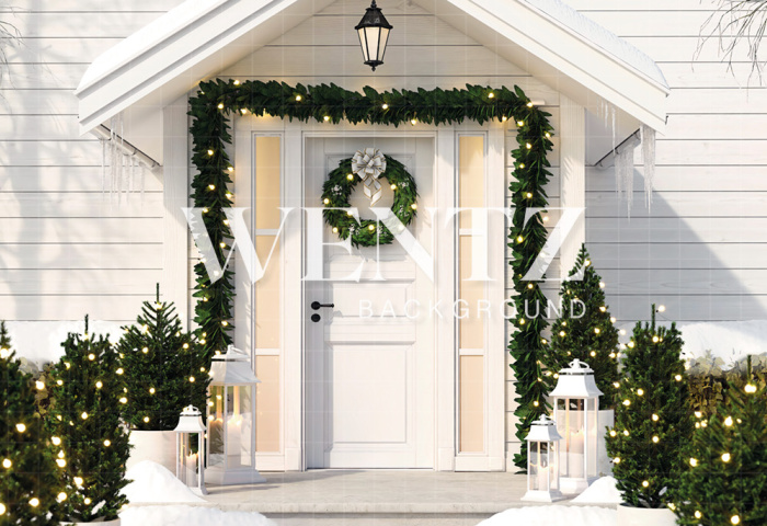 Fundo Fotográfico em Tecido Fachada Casa de Natal com Porta Branca / Backdrop 2316