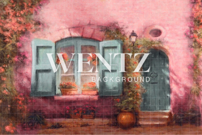 Fundo Fotográfico em Tecido Fachada Rosa com Flores / Backdrop CW64