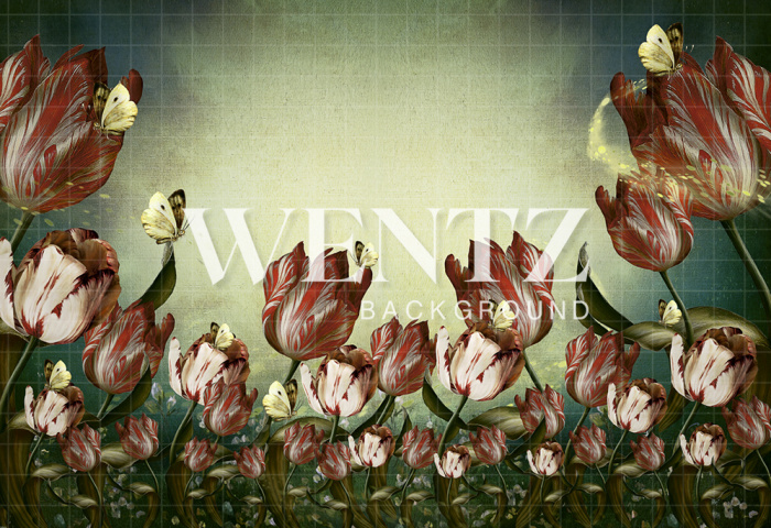 Fundo Fotográfico em Tecido Flores Vermelhas e Borboletas / Backdrop 2102