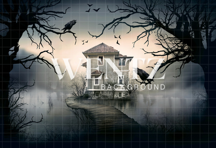 Fundo Fotográfico em Tecido Halloween Casa no Lago / Backdrop 2356