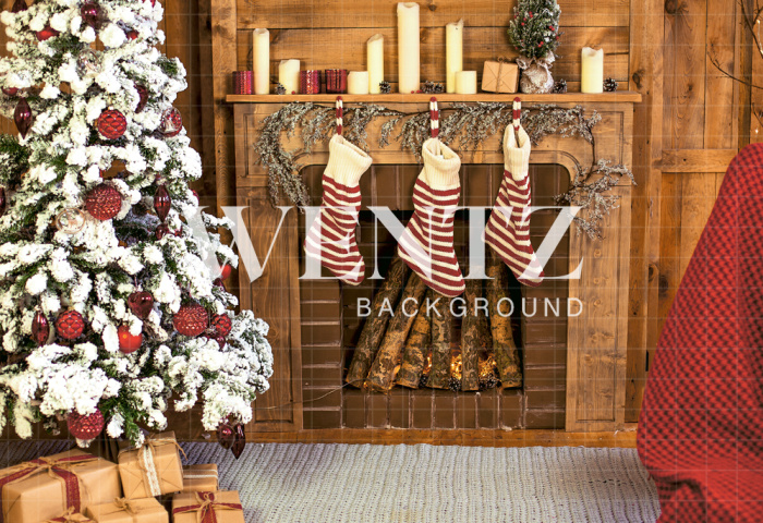 Fundo Fotográfico em Tecido Lareira com Botas de Natal / Backdrop 751