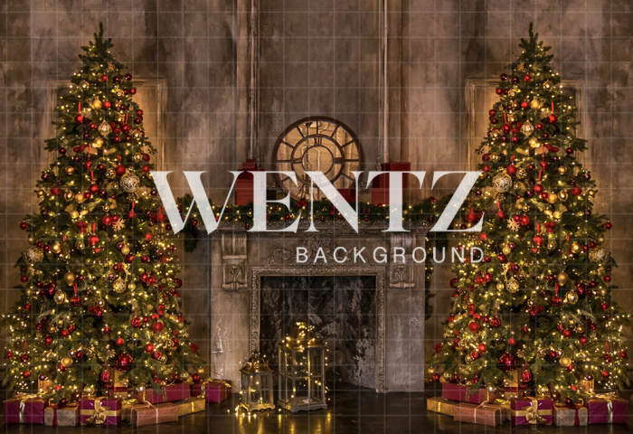 Fundo Fotográfico em Tecido Lareira e Pinheiros de Natal / Backdrop 2143