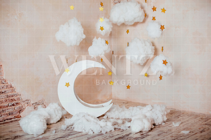 Fundo Fotográfico em Tecido Lua Estrelas e Nuvens / Backdrop 2123