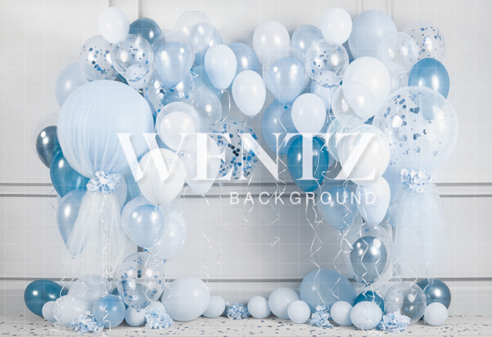 Fundo Fotográfico em Tecido Smash the Cake Balão Azul e Branco / Backdrop 2239