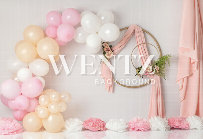 Fundos Fotográficos em Tecido Cenário Balão Rosa e Argolas Newborn / Backdrop 2033