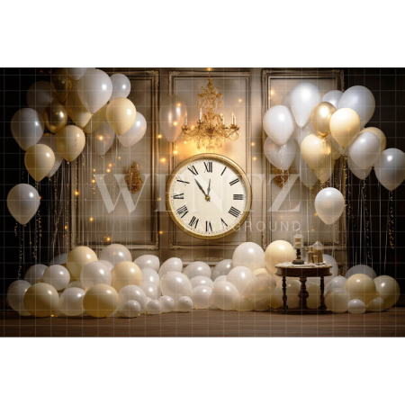 - Fundo Fotográfico em Tecido Relógio e Balões Brancos / Backdrop 5049A partir de R$ 321,00