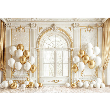- Fundo Fotográfico em Tecido Salão com Balões Brancos / Backdrop 4998A partir de R$ 321,00