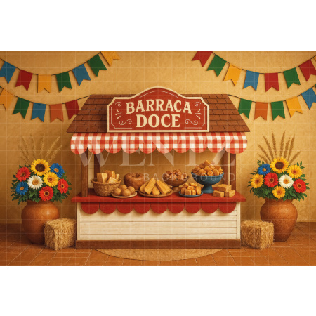 - Fundo Fotográfico em Tecido Festa Junina Barraca de Doces / Backdrop 6950A partir de R$ 186,00