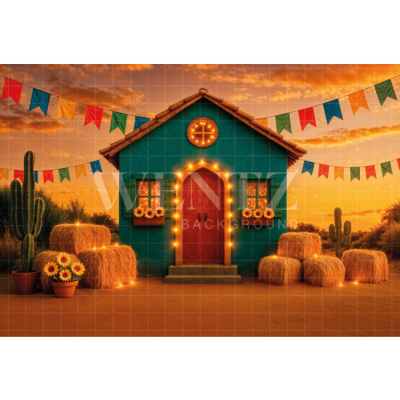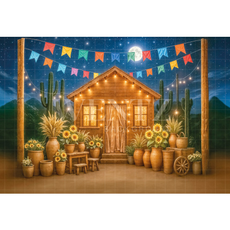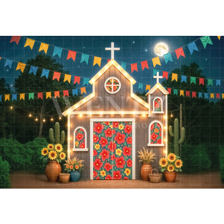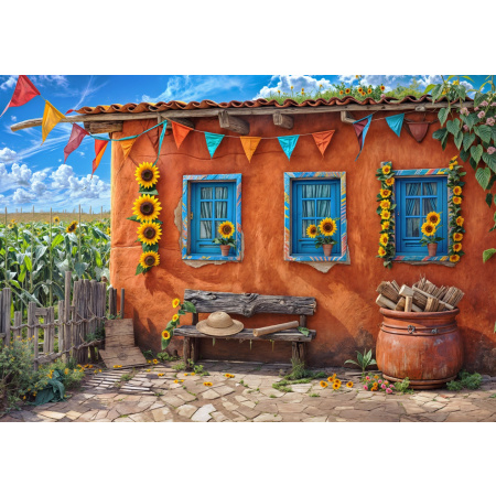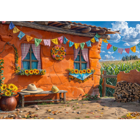 - Fundo Fotográfico em Tecido Festa Junina Casa com Bandeirinhas / Backdrop 6955A partir de R$ 186,00