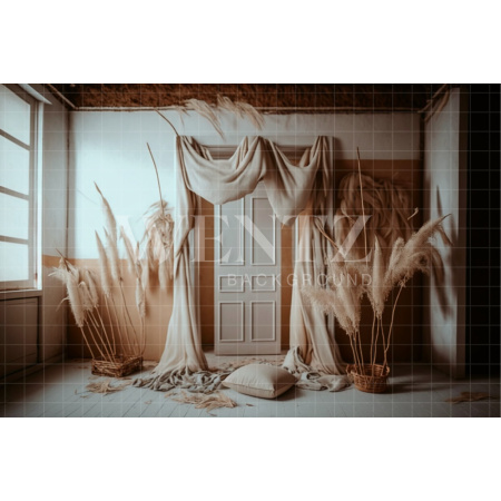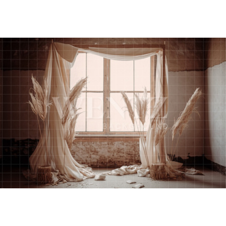 - Fundo Fotográfico em Tecido Cenário Boho com Cortinas e Capim dos Pampas / Backdrop 3070A partir de R$ 538,00