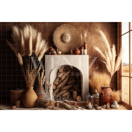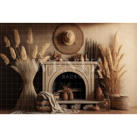- Fundo Fotográfico em Tecido Sala Boho com Lareira / Backdrop 2800A partir de R$ 538,00