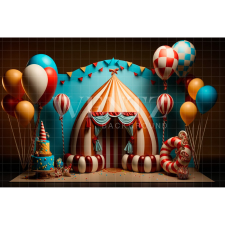 - Fundo Fotográfico em Tecido Smash the Cake Circo com Balões / Backdrop 3017A partir de R$ 186,00