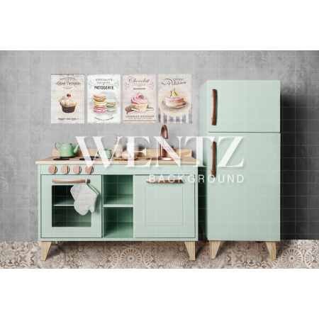 - Fundo Fotográfico em Tecido Cozinha Infantil Verde / Backdrop 2196A partir de R$ 182,00