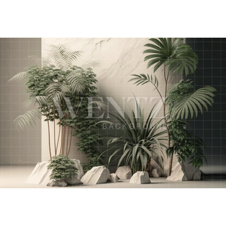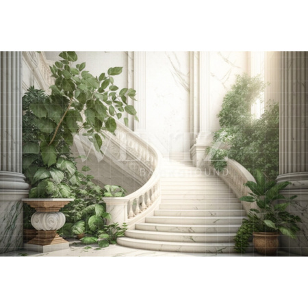 - Fundo Fotográfico em Tecido Nature Cenário Branco com Escada e Plantas / Backdrop 2967A partir de R$ 538,00