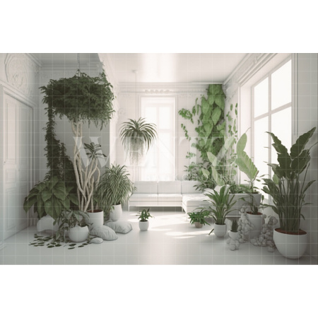 - Fundo Fotográfico em Tecido Nature Sala Branca com Sofá e Plantas / Backdrop 2968A partir de R$ 538,00