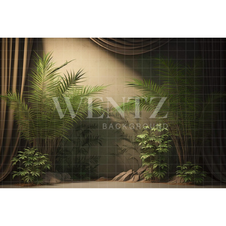 - Fundo Fotográfico em Tecido Nature Cenário Bege com Cortinas e Plantas / Backdrop 2975A partir de R$ 538,00