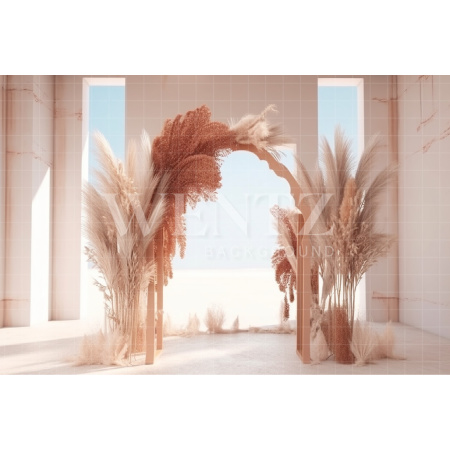 - Fundo Fotográfico em Tecido Cenário Boho com Arco e Capim dos Pampas / Backdrop 3073A partir de R$ 538,00