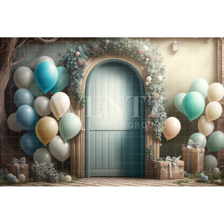 - Fundo Fotográfico em Tecido Porta Azul com Flores / Backdrop 2789A partir de R$ 538,00