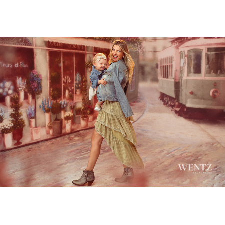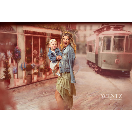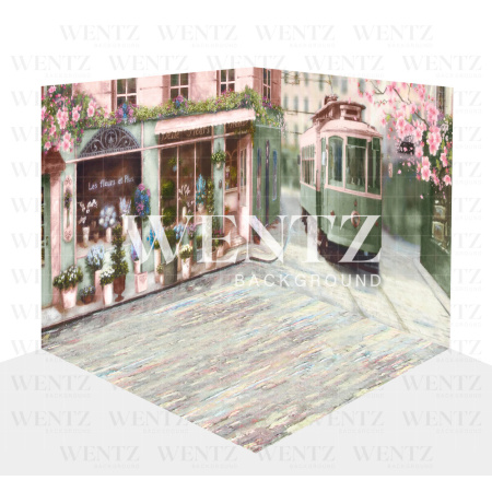 - Fundos Fotográficos em Tecido Cenário Bonde com Flores de Cerejeira em Paris 3D / WTZ119A partir de R$ 1.963,00