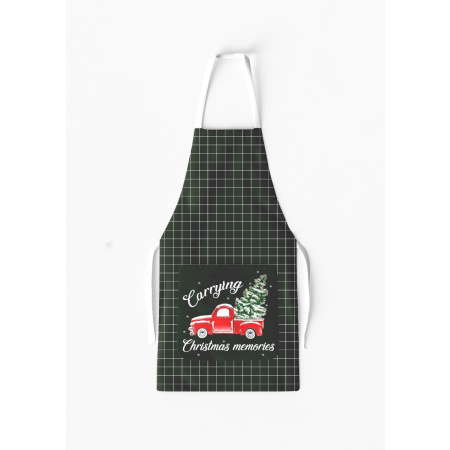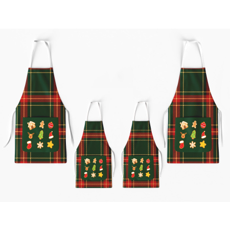 Kit 4 Aventais Família Natal com Bolso Xadrez Verde / AW09