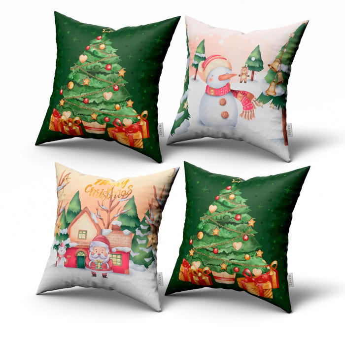 Kit 4 Capas de Almofadas Natal Aquarela - 45 x 45 / WA07